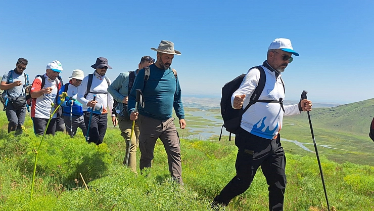 Van Gölü Aktivistleri Derneği üyeleri, Van'ın Erciş ilçesinde bulunan Meydan Gölü ve 2850 rakımlı Gürgür Baba Tepesi'ne yürüyüş düzenledi.