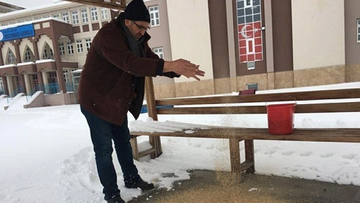 Malatya merkez ilçe Yeşilyurt Bostanbaşı İlkokulu öğretmenleri yoğun kar yağışı nedeniyle yem bulmakta zorlanan kuşlar için okul bahçesine bulunan kuş yuvalarına ve bahçe duvarlarına yem bıraktılar.