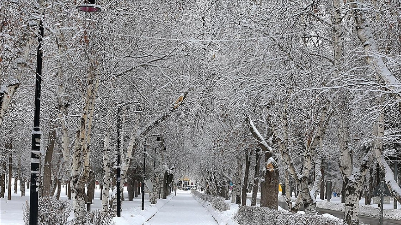Termometrelerin gece sıfırın altında 3 derece gösterdiği kentte, park halindeki araç camları buz tuttu, ağaçlar, yollar ve kaldırımlar kar ve buzla kaplandı.