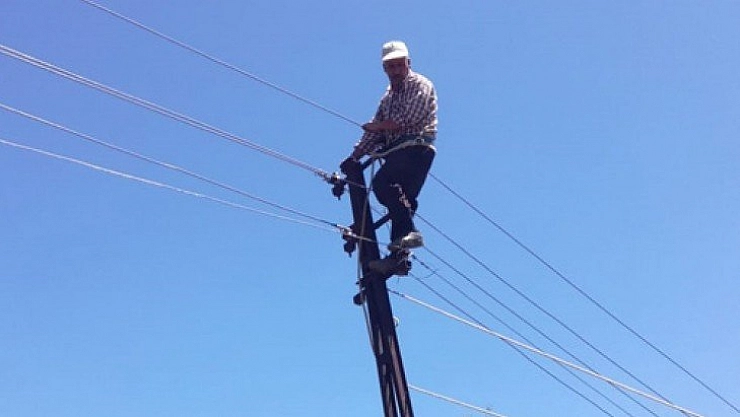 Çolak Mahallesi Küçük mevkisinde bir elektrik direğine henüz bilinmeyen nedenle çıkan Ümit H, direğin eğilmesi nedeniyle aşağı inemedi.