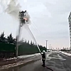 Edinilen bilgilere göre, ilçenin Mezopotamya Bulvarı'nda bulunan elektrik direğinin üstündeki trafoda henüz belirlenemeyen nedenle yangın çıktı. İhbar üzerine olay yerine itfaiye ekibi sevk edildi. İtfaiye erleri yangına müdahale edip söndürürken, o anlar kask kamerasınca kayda alındı.