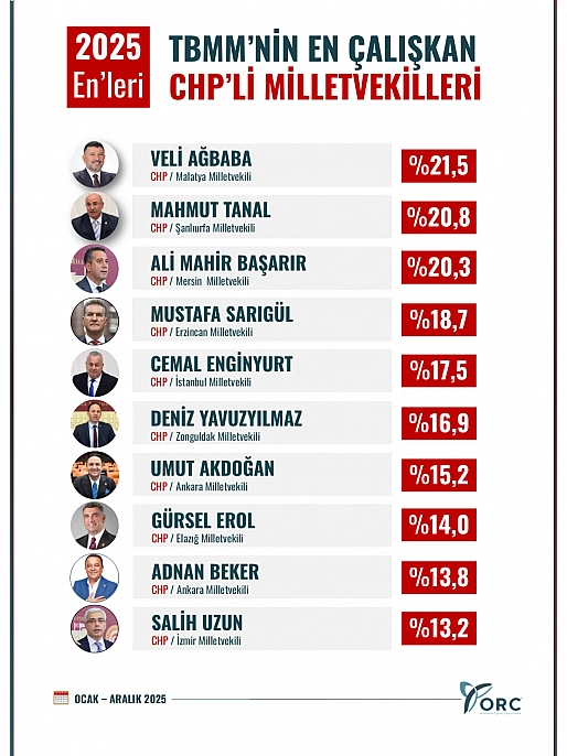 ORC Araştırma Şirketi tarafından yapılan ankete göre, CHP Malatya Milletvekili Veli Ağbaba, Türkiye'nin en başarılı milletvekili seçildi.