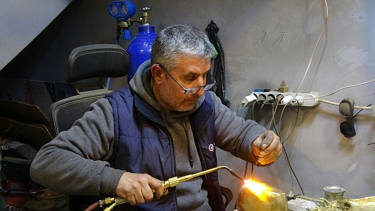 Kadın elinin sanata yatkın olduğunu belirten Senem Sevdim, "Eşim 5 yıldır bakır ve alüminyum döküm işi üzerine çalışıyordu. Daha sonra dükkan açtık. Eşim bu işi yapmaya başladı. Elemana ihtiyacı vardı. Ben de eşimle beraber bu işi yapmak istedim. Dikkatimi çektim, merak ettim. Geldim eşimle beraber çalışmaya başladım. Güzel, zevkli bir iş ve çok severek yapıyorum. Eşime yardımcı oluyorum. Birlikte çalışıyoruz. Telleme, taşlama ve zımparalamaları yapıyorum. Telleme, taşlama ve zımparalama gibi farklı aşamalardan sonra ürünlerimizi hazırlıyoruz ve satışa sunuyoruz. Eşimle birlikte çalışmak çok güzel. Ben dükkana öğleye doğru geliyorum. Eşim kaynak işine başlamış oluyor. Daha sonra o kaynak ettiği ürünleri ben alıyorum. Taşlama işinden geçiriyorum. Daha sonra telleme işini yapıyorum. Ondan sonra beraber çalışıyoruz" dedi.