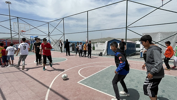 'Asrın felaketi' olarak nitelenen Kahramanmaraş merkezli depremlerin büyük yıkıma neden olduğu Malatya'da depremzede antrenörler, kendileri gibi konteyner kentte kalan çocuklara futbol eğitimi veriyor.