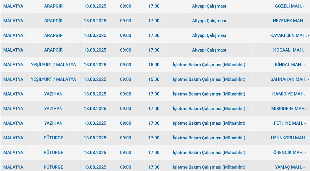 - Fırat EDAŞ Duyurdu: 19 Ağustos Pazartesi Günü Malatya'da Elektrikler Ne Zaman Kesilecek?