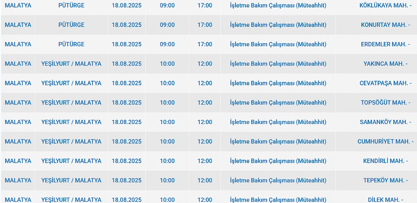 Malatya'da 18 Ağustos 2025 Pazartesi günü planlı elektrik kesintileri yaşanacak. Peki hangi ilçelerde elektrik kesilecek ve elektrik ne zaman gelecek? İşte detaylar...