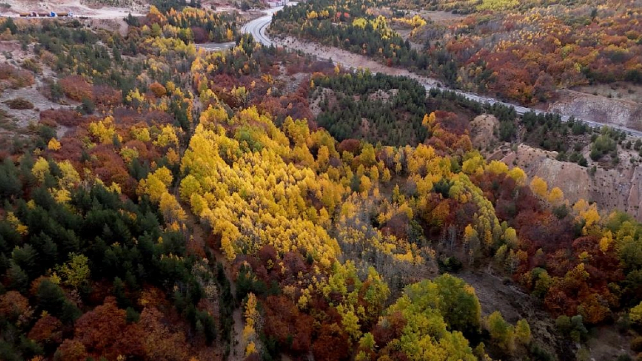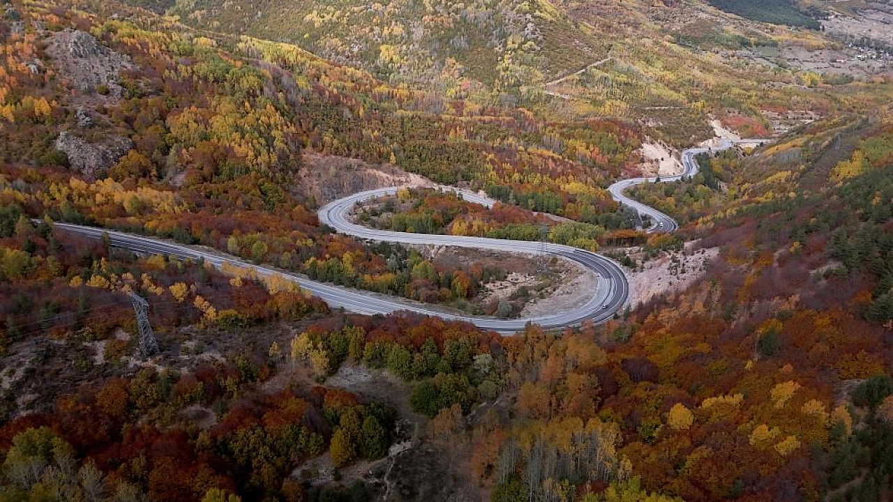 Sivas'ın Zara ve Suşehri ilçeleri arasında bulunan Geminbeli Geçidi'nde sonbaharda renk cümbüşü oluştu. Kartpostallık görüntülerin oluştuğu geçit, dron ile havadan görüntülendi.