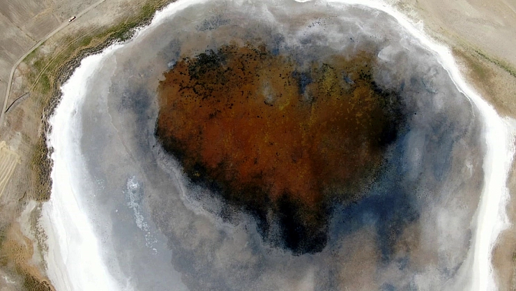 Aşırı sıcakların yaşandığı Sivas'ta Kellah Gölü'nün bir kısmı kurudu, gölün kurumayan kısmında ise kalbi andıran şekil ortaya çıktı.