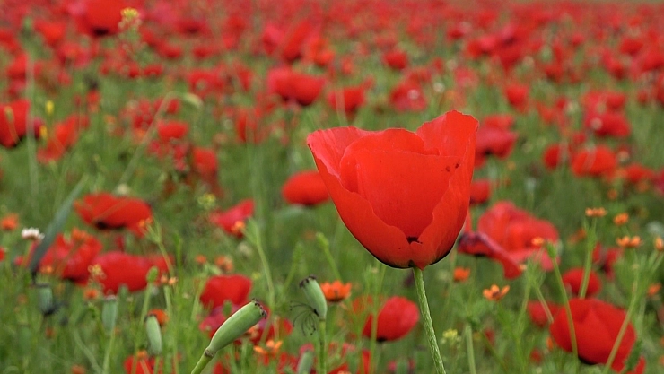 Muş'ta etkili olan yağışların ardından ovada kendiliğinden yetişen gelincik çiçekleri görsel şölen sunuyor. Merkeze bağlı Yeşilova beldesinde bulunan tarlalar kırmızı gelinciklerle süslendi. Gelincik çiçeği Muş Ovası’nda renkli görüntüler oluştururken, bazı vatandaşlar ise tarlalara gelerek fotoğraf çektiriyor.