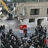 Açıklama ve incelemelerinin ardından kepçe operatörünün koltuğuna geçen Gülpınar, bina yıkımları için ilk kepçeyi vurarak çalışmaları başlattı.