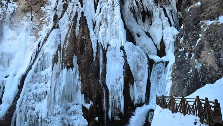 Hava sıcaklığının eksi 16'ya düştüğü Malatya'nın Darende ilçesinde buz tutan Günpınar Şelalesi, görüntüsüyle adeta kartpostallık görüntü oluşturdu.