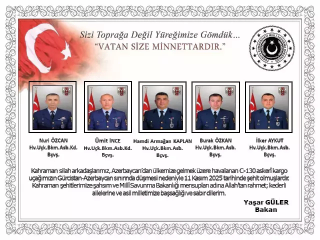 Azerbaycan'dan kalkan ve Gürcistan'da düşen askeri kargo uçağındaki 20 askerimiz şehit düştü. Acı haberi Milli Savunma Bakanlığı duyururken, şehitlerimizin isimleri de belli oldu.