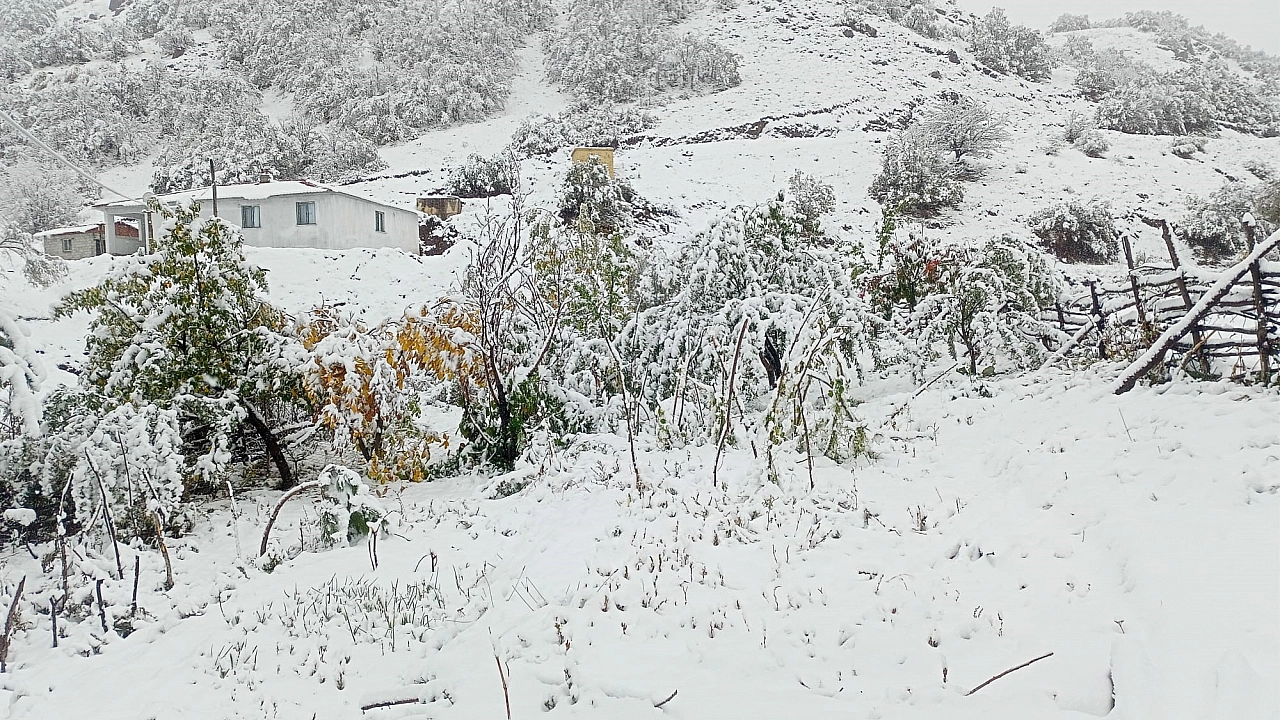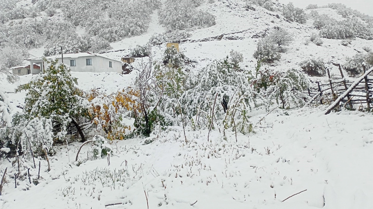 Erzincan'ın Tercan ilçesine bağlı yüksek kesimler yağan karla birlikte beyaz örtüyle kaplandı. Erken bastıran kış hasadı yapılmayan cevizi kar altında bıraktı.