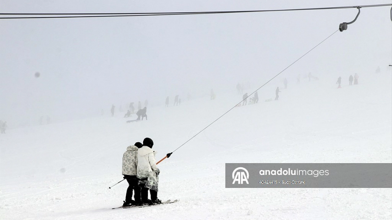 Elazığ'ın Sivrice ilçesinde göl manzarasıyla dikkati çeken Hazarbaba Kayak Merkezi'nde yarıyıl tatili yoğunluğu yaşandı.