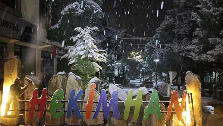 Malatya'nın Hekimhan ilçesinde kar yağışı etkili oldu.