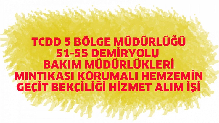 TCDD 5 Bölge Müdürlüğü 51-55 Demiryolu Bakım Müdürlükleri, mıntıkası korumalı hemzemin geçit bekçiliği hizmet alım işini açık ihale usulü ile ihale edileceğini açıkladı.