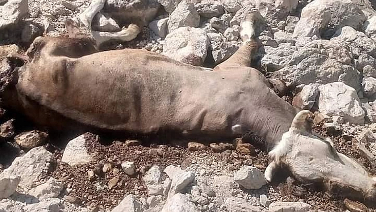 Antalya'nın Gazipaşa ilçesinde bağlı Günnercik Yaylası'nda Ümit Tosun'a ait kayıp inek ve buzağısı kurtlar tarafından parçalanarak telef edilmiş halde bulundu.