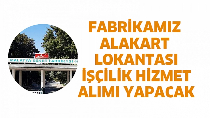 Malatya Şeker Fabrikası Müdürlüğü, açık ihale usulü ile işçilik hizmet alımı yapacağını açıkladı.
