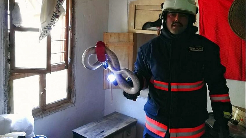 İtfaiye yılanı yakaladı