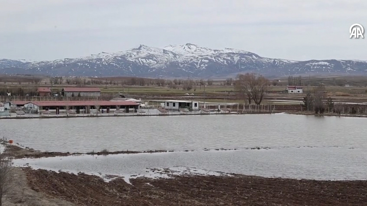 Sivas'ta bir Kangal köpeği çiftliği karların erimesi nedeniyle su altında kaldı.