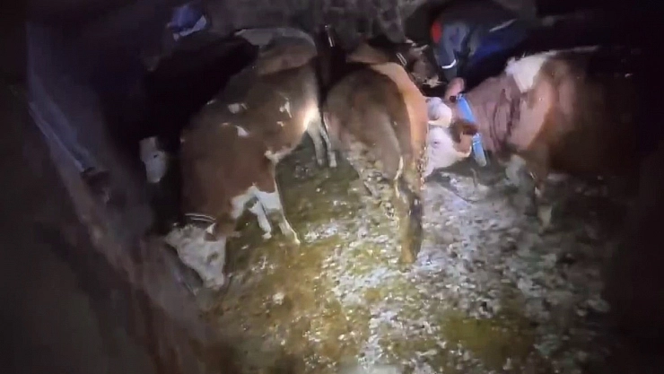 Adıyaman'da yoğun kar yağışına dayanamayan ahır çöktü. 20 büyükbaş hayvandan 3'ü telef oldu.