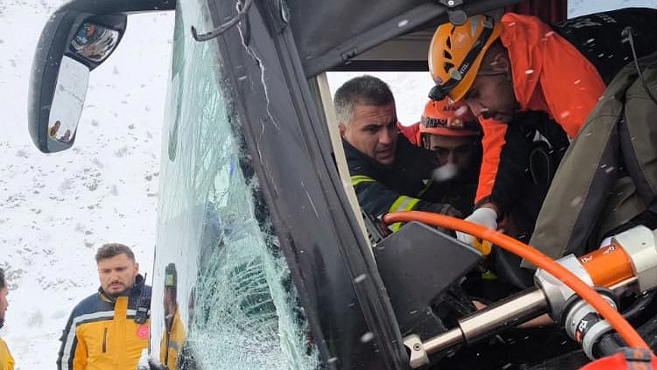 Kaza, Erzincan-Sivas kara yolu üzerindeki Sakaltutan Geçidi tüneller mevkisinde meydana geldi. Edinilen bilgiye göre, Marmaris’ten Van’a gitmekte olan L.A. yönetimindeki 16 ABN 493 plakalı yolcu otobüsü, kar yağışı ve olumsuz hava şartlarının etkili olduğu bölgede, önünde seyreden İran plakalı tıra arkadan çarptı.