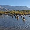 Erzincan’ın Büyük Kadağan köyü mevkiinde otlaktan dönen büyükbaş hayvanlar, su seviyesinin azalmasıyla birlikte Karasu Nehri’ni yürüyerek geçmeye başladı. Normalde köprü üzerinden geçen hayvanların bu kez nehri yürüyerek aşması, kuraklığın boyutunu gözler önüne serdi.