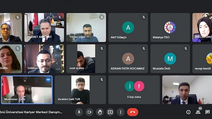 Malatya İnönü Üniversitesi Kariyer Merkezi'nin 2021-2022 yılı Güz Dönemi Danışma Kurulu ilk toplantısı yapıldı. Toplantı Rektör Yardımcısı Prof. Dr. Nusret Akpolat başkanlığında, Rektör Danışmanı ve Kariyer Merkezi Koordinatörü Doç. Dr. Hasan Yılmaz'ın moderatörlüğünde çevrim içi olarak gerçekleştirildi.