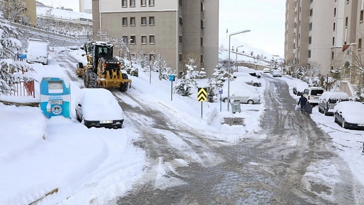 Malatya'nın Battalgazi ilçesinde etkili olan kar yağışı nedeniyle yaya ve araç trafiğinin etkilememesi için yoğun çalışma yürütülüyor