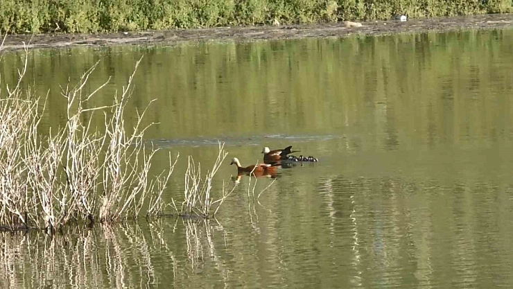 Daha sonra barajın serin sularında dolaşan angut ailesi bir süre sonra gözlerden kayboldu.