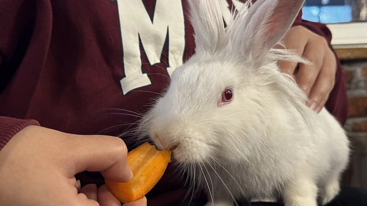 Kedinin ağzından kurtarılan tavşan kafenin maskotu oldu