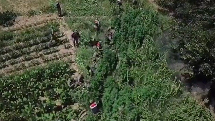 Malatya'nın Pütürge ilçesinde özel olarak yetiştirilen ve boyu 2 metreyi aşan kenevir yetiştirilen bahçeye jandarma ekipleri operasyon düzenledi.