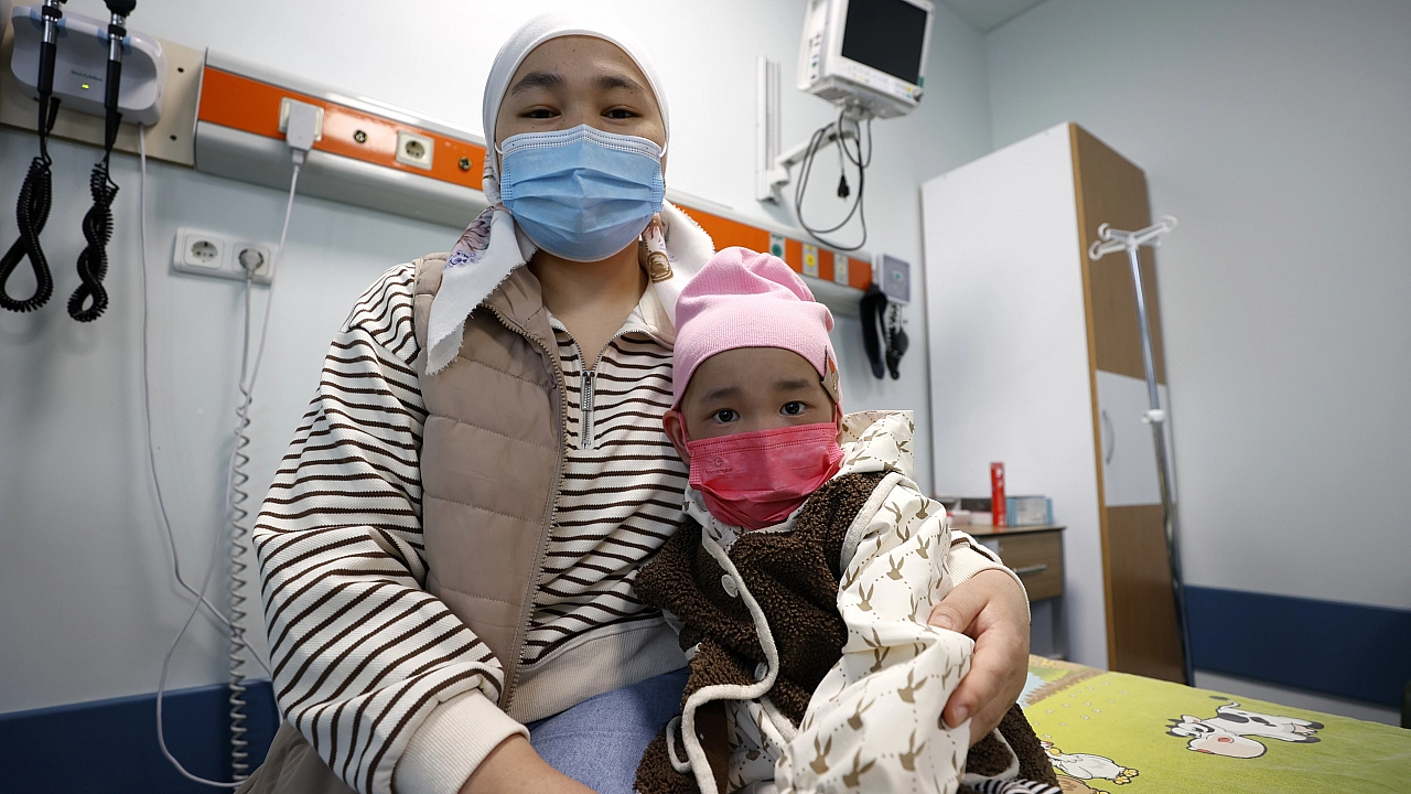 Malatya Turgut Özal Tıp Merkezi Çocuk Kemik İliği Nakli Merkezi'nde ameliyata alınan 4 yaşındaki aplastik anemi hastası Myrzabaeva Aruuzat, annesinden alınan yarı uyumlu kök hücrenin nakliyle sağlığına kavuştu.