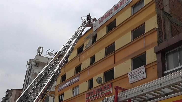 Elazığ'da 6 Şubatta Kahramanmaraş'ta meydana gelen yıkıcı depremlerin ardından ağır hasar alan binanın çatı katında yangın çıktı. Çıkan yangın itfaiye ekipleri tarafından kontrol altına alınarak söndürüldü.