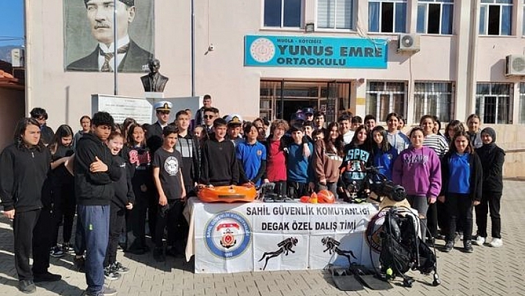 İçişleri Bakanlığının yürüttüğü ‘’Geleceğin Denizcileri’’ projesi çerçevesinde Türkiye Cumhuriyeti Sahil Güvenlik Marmaris 310 Komutanlığı’ndan gelen komutanlar, Köyceğiz Yunus Emre Ortaokulu öğrencilerine bilgilendirme yaptı. Amacı ilkokul ve ortaokul düzeyindeki öğrenim gören öğrencilere denizcilik sevgisi aşılamak olan projeyle geleceğe yönelik meslek tercihi yapacak öğrenciler için Sahil Güvenlik Komutanlığı hem sevdirildi hem tanıtıldı. Gerçekleştirilen eğitimlerde denizlerin ve deniz canlıları hakkında bilgi verilirken daha duyarlı gençlerin yetişmesi için farkındalık oluşturuldu. Köyceğiz Yunus Emre Ortaokulu müdürlüğü ise etkinlik sonunda eğitim veren komutanlara teşekkür etti.