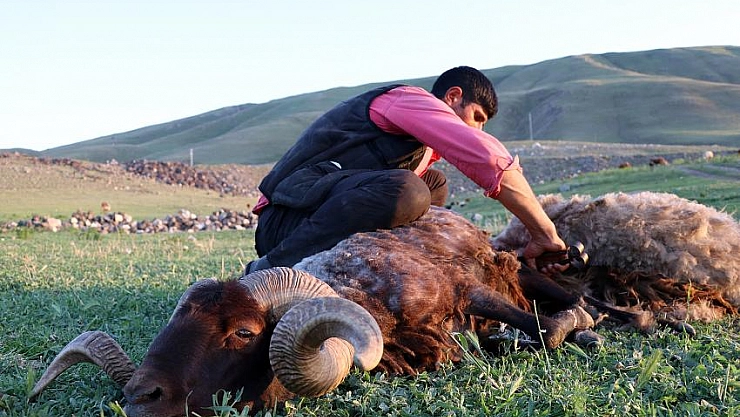 Iğdır ve Ağrı sınırında bulunan Sinek Yaylası başta olmak üzere yöredeki yaylalara çıkmaya hazırlanan besiciler, aylarca sürecek sezon için başlattıkları hazırlıkları sürdürüyor. Geçimlerini genellikle hayvancılık yaparak sağlayan besiciler, hayvanlarının yaylalarda daha rahat dolaşabilmeleri ve daha iyi gelişmeleri için yünlerini kırkıyor. Kırkma görevini sürülerin çobanlarına veren besiciler, bu sayede çobanların yünleri satarak ek gelir elde etmelerine de yardımcı oluyor. Ağrı Dağı'nın Korhan Yaylası'na çıkmaya hazırlanan besicilerden İsmet Hamsay, havaların ısınmasıyla hazırlıklara başladıklarını söyledi. Hazırlıklar arasında koyun kırkmanın da yer aldığını belirten Hamsay, "Önce koçları ve kısır hayvanları kırkıyoruz, sonra koyunların ve daha sonra bu yıl doğan kuzuların kırkımını yapacağız. Kırkma hayvanın hem daha iyi gelişimini sağlıyor hem de sıcak havalarda oluşabilecek hastalıklara karşı önlem almış oluyoruz." dedi.