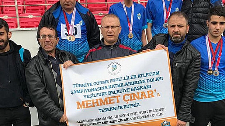 Yeşilyurt Görme Engelliler Spor Kulüp Başkanı Şerif Büyükdaş, Şampiyonaya katılan sporcularının elde etiği başarıdan mutlu olduğunu belirterek, “Malatya’yı Türkiye Şampiyonasında en güzel şekilde temsil etmenin gururunu yaşıyoruz” dedi. Türkiye Şampiyonasında takım olarak güzel sonuçlar aldıklarını belirten Büyükdaş, “Sporcularımızdan Yusuf Çelik uzun atlama ile 100 metre koşuda altın madalya, Salih Karadeniz güllede altın madalya, disk atmada bronz, 15-17 yaş grubunda ise, Mikail Bal uzun atlamada gümüş madalya, gülle atmada gümüş madalya, Muhammed Dönmez uzun atlamada ve 100 metre koşuda gümüş madalya alarak Malatya’mızı en güzel şekilde temsil etmişlerdir. Çok sayıda madalya alarak tamamladığımız Türkiye Şampiyonasında kentimizi başarıyla temsil etmenin gururunu yaşamaktayız” dedi. Yeşilyurt Görme Engelliler Spor Kulübünün katıldığı turnuvalarda elde ettiği başarılarda Yeşilyurt Belediye Başkanı Mehmet Çınar’ın verdiği desteklerin büyük katkısı olduğunu ifade eden Büyükdaş, “Yeşilyurt Belediye Başkanımızın kulübümüze ve sporcularımıza olan ilgi ve yakınlığı bizleri ziyadesiyle memnun etmektedir. Başkanımızın turnuva öncesinde ve sonrasında bizleri araması ve başarı dileklerini paylaşması sporcularımızın güzel sonuçlar almalarına katkı sağlamıştır.31 Mart Mahalli İdareler Genel Seçimlerinde Yeşilyurt Belediye Başkanlığına seçilmesinden büyük bir memnuniyet duyduğumuz Mehmet Çınar Başkanımıza yeni görevinde üstün başarılar dilerken, kulübümüze verdiği destekten dolayı Yönetim Kurulu ve sporcularımız adına teşekkürlerimi sunuyorum. Başkanımızın destekleriyle bundan sonra katılacağımız turnuvalar ve şampiyonalarda daha güzel sonuçları alacağımıza yürekten inanıyoruz” şeklinde konuştu.