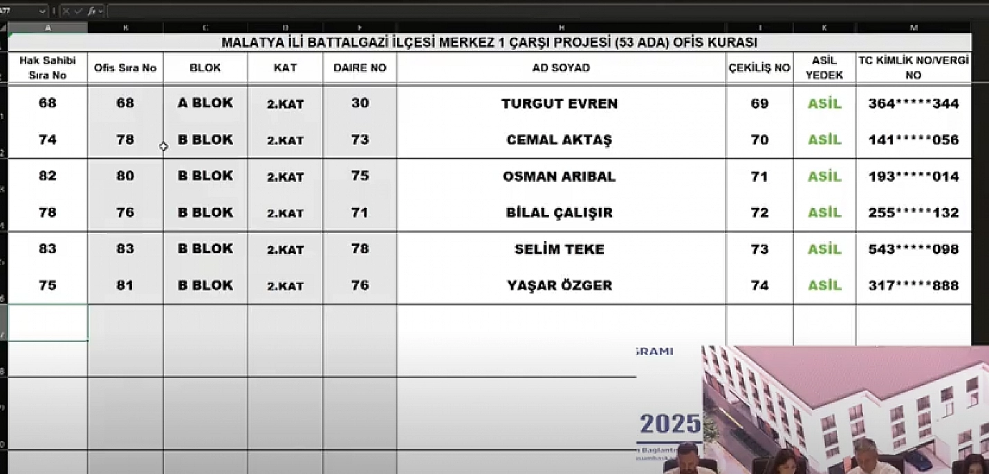 Malatya'da 6 Şubat 2023'teki depremlerde yıkılan veya ağır hasar gören dükkânların kurası çekiliyor. Merkez-1 Çarşı Projesi kapsamında 53 Ada 152 ofisin kura çekimini sonuçları belli oldu İşte hak sahibi tam liste...
