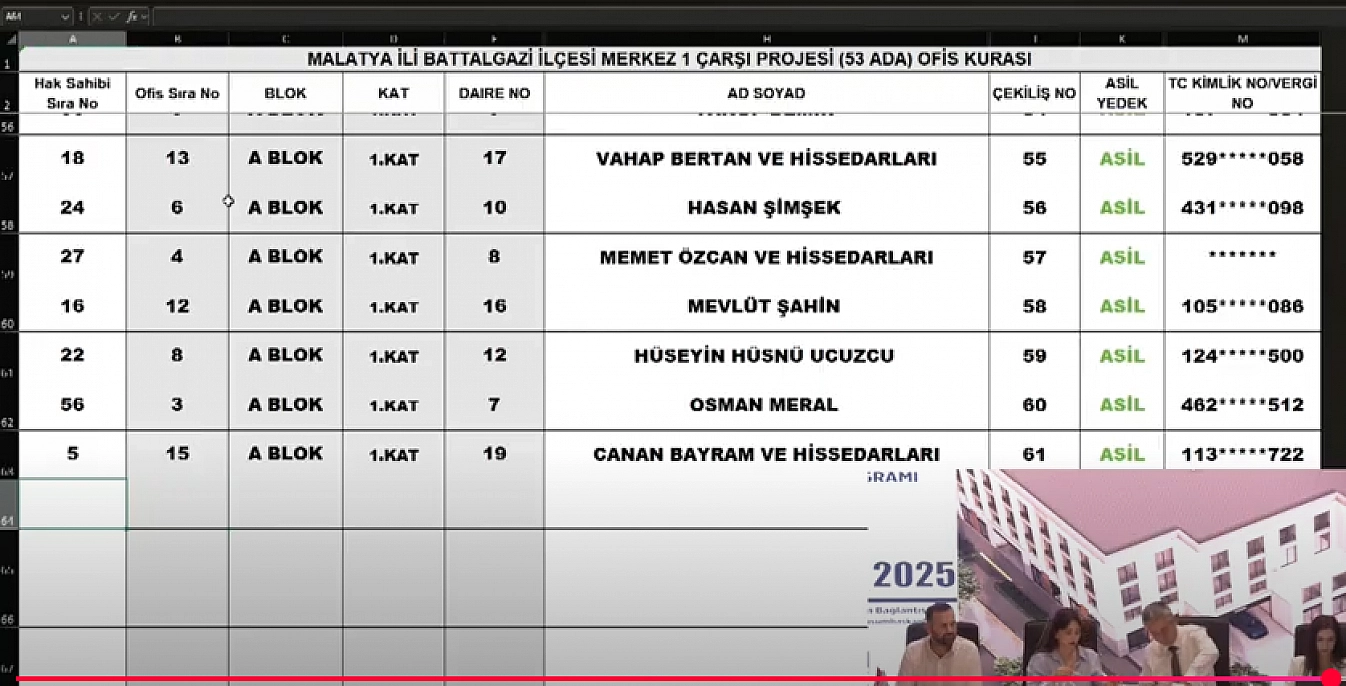 Malatya'da 6 Şubat 2023'teki depremlerde yıkılan veya ağır hasar gören dükkânların kurası çekiliyor. Merkez-1 Çarşı Projesi kapsamında 53 Ada 152 ofisin kura çekimini sonuçları belli oldu İşte hak sahibi tam liste...