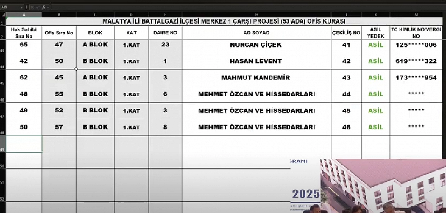 Malatya'da 6 Şubat 2023'teki depremlerde yıkılan veya ağır hasar gören dükkânların kurası çekiliyor. Merkez-1 Çarşı Projesi kapsamında 53 Ada 152 ofisin kura çekimini sonuçları belli oldu İşte hak sahibi tam liste...