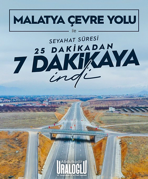 Ulaştırma ve Altyapı Bakanı Abdulkadir Uraloğlu, Malatya Kuzey Çevre Yolu 1. Kısmı'nın hizmete girmesiyle şehir içi seyahat süresinin 25 dakikadan 7 dakikaya indirildiğini söyledi.