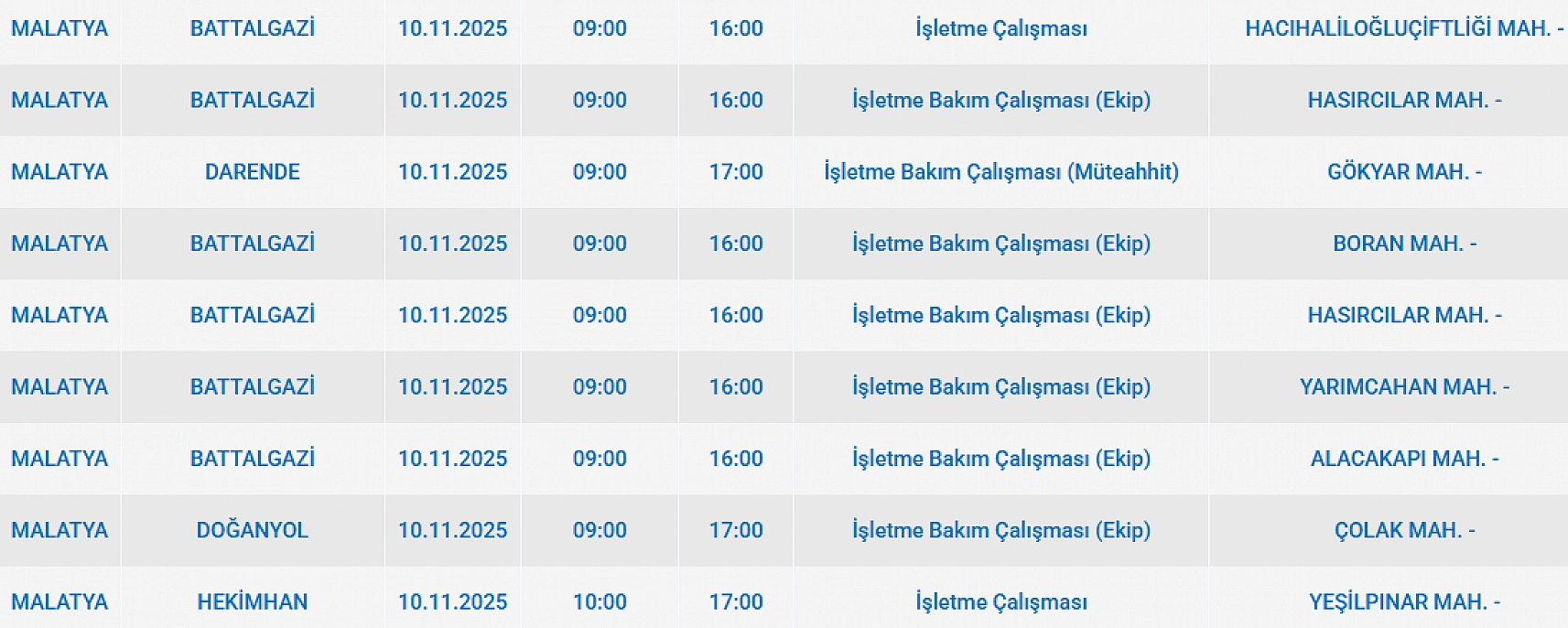 - Malatya'da 10 Kasım'da planlı elektrik kesintisi: Kesinti hangi ilçelerde, saat kaçta olacak?