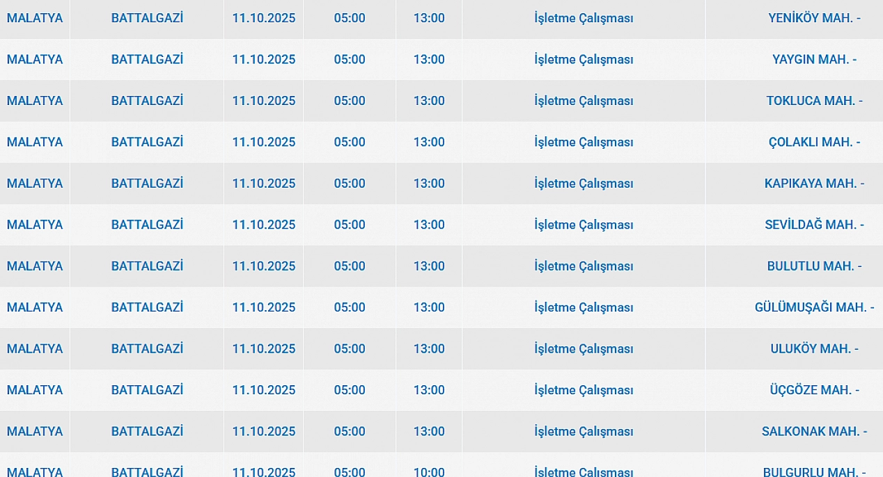 Malatya'da 11 Ekim 2025 Cumartesi günü Battalgazi, Arguvan, Hekimhan, Arapgir ilçelerinde planlı bakım çalışmaları nedeniyle elektrik kesintisi yaşanacak. İşte elektrik kesintisi yaşayacak mahalleler…
