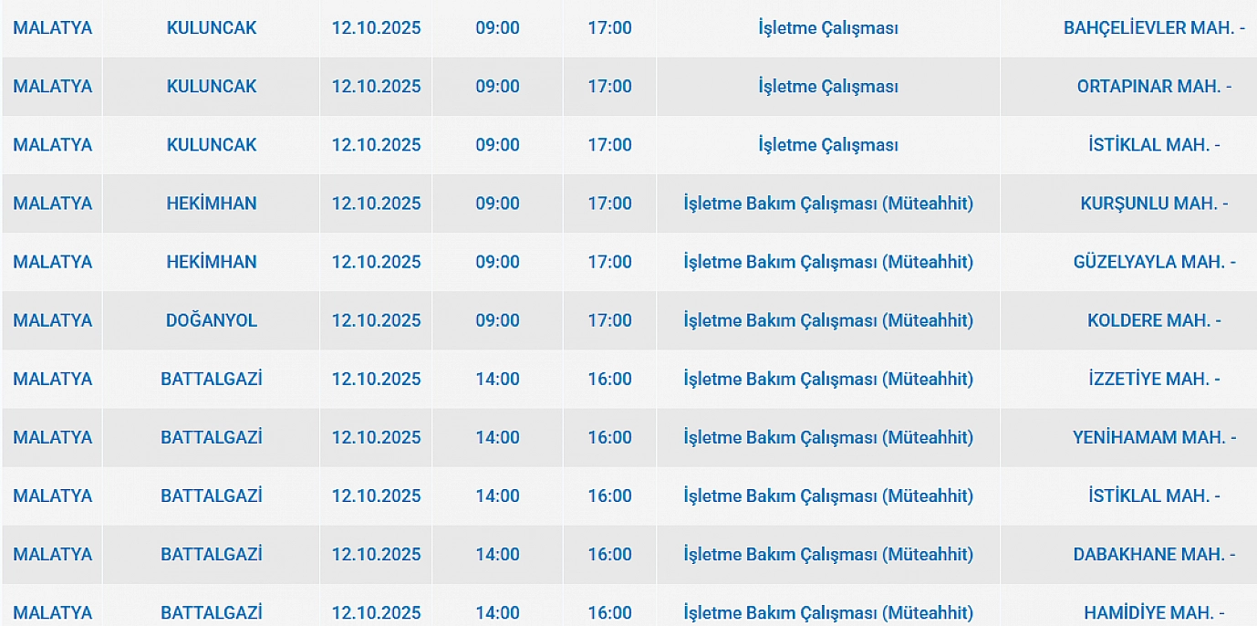 - Malatya'da 12 Ekim'de planlı elektrik kesintisi: Kesinti hangi ilçelerde, saat kaçta olacak?