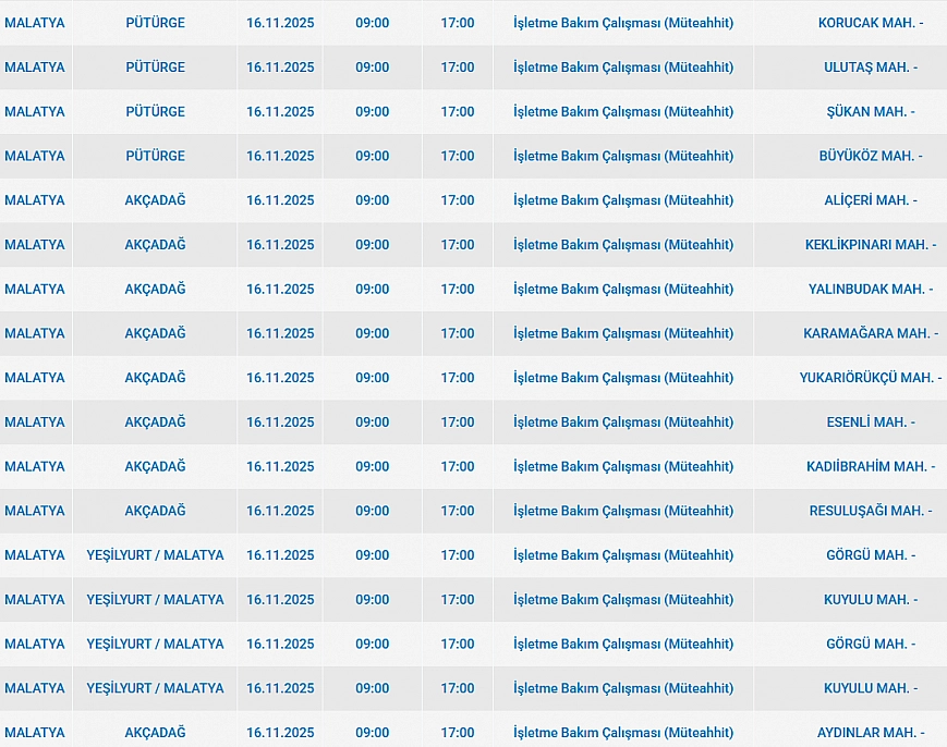 - Malatya'da 16 Kasım'da planlı elektrik kesintisi: Kesinti hangi ilçelerde, saat kaçta olacak?