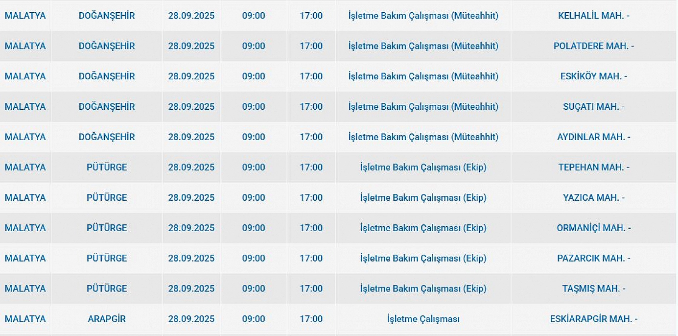 Malatya'da 28 Eylül 2025 Pazar günü planlı elektrik kesintileri yaşanacak. Peki, hangi ilçelerde elektrik kesilecek ve elektrik ne zaman gelecek? İşte detaylar…
