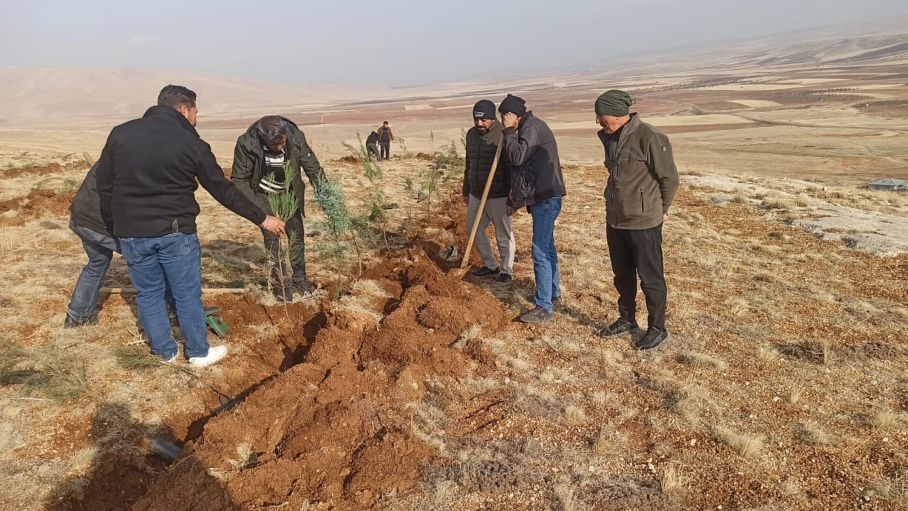 Darende ilçesine bağlı Yeniköy Mahallesi’nde Kamalak mevkiinde düzenlenen etkinlikte öğretmenler, öğrenciler, gönüllüler ve mahalle sakinlerinin iş birliğiyle yaklaşık 3 bin çam fidanı toprakla buluşturuldu.