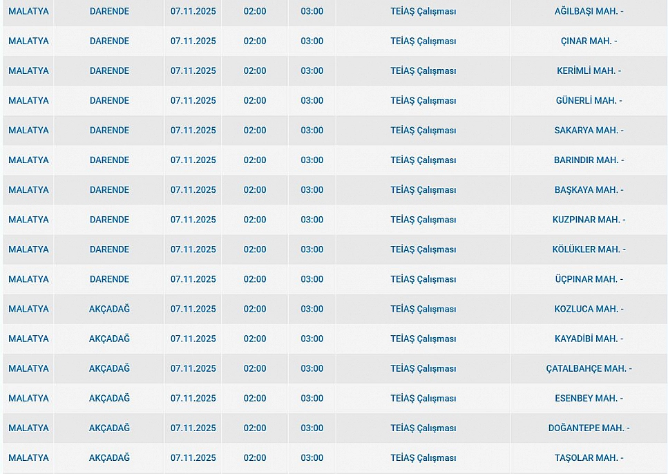 - Malatya'da 7 Kasım'da planlı elektrik kesintisi: Kesinti hangi ilçelerde, saat kaçta olacak?