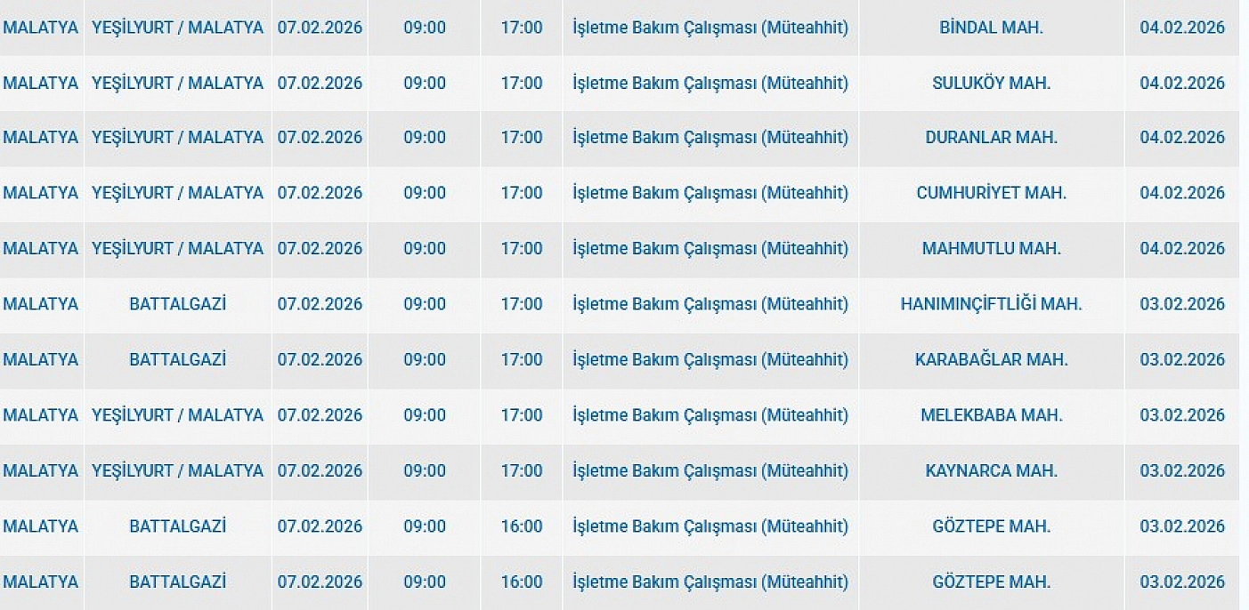 - Malatya'da 7 Şubat planlı elektrik kesintisi: Kesinti hangi ilçelerde, saat kaçta olacak?