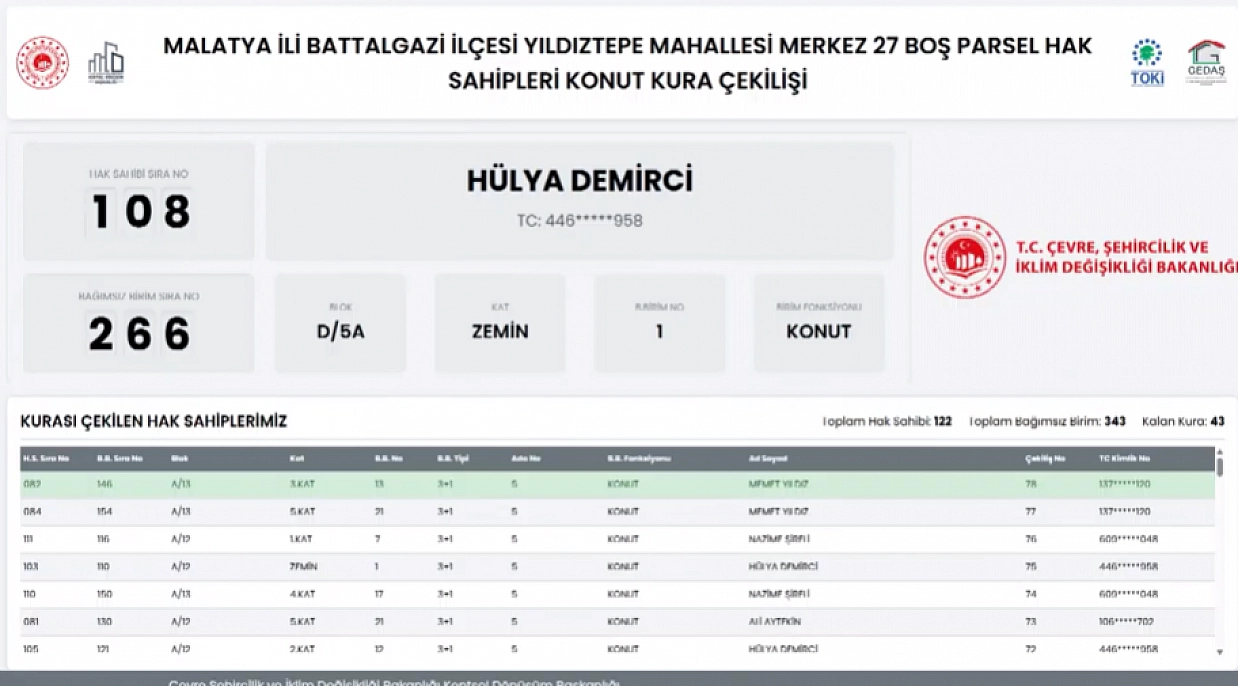 Malatya'da boş parsel hak sahipleri belli oldu! İşte tam liste